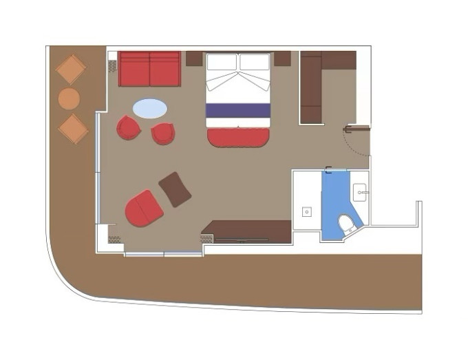 | SLP - Premium Suite Aurea Promenade & Ocean 21 m² + balkón 7 m² s výhľadom na Promenade a na more. 11. paluba. Cenový model Aurea. | 2 355 € 2 355 € za osobu |