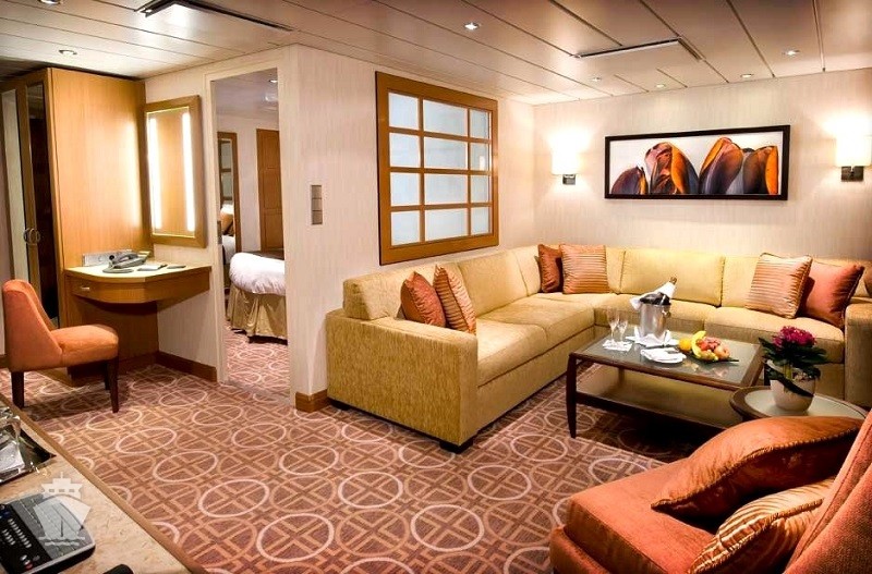 | CS - Celebrity Suite 44 m² + balkón 8 m². Kúpeľňa s vírivkou. 6. až 9. paluba. Max 3 osoby. Výhody Suite The Retreat. | 18 548 € 18 548 € za osobu | ||