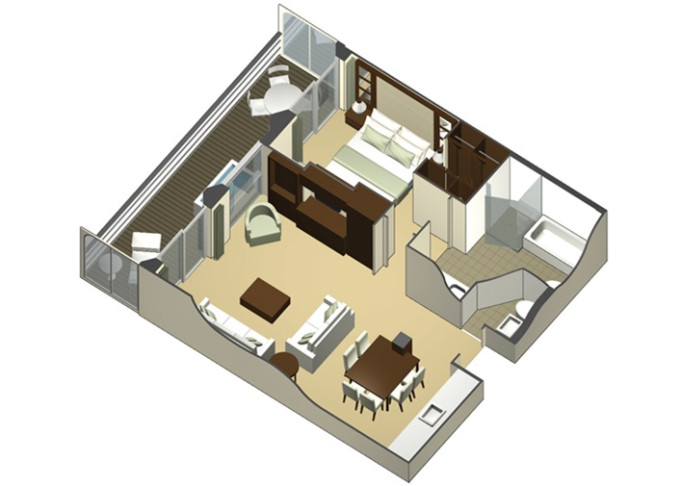 | S1 - Sky Suite 28 m² + balkón 7 m². 6. až 12. paluba. Max 4 osoby. Výhody Suite The Retreat. | 6 826 € 6 826 € za osobu | ||