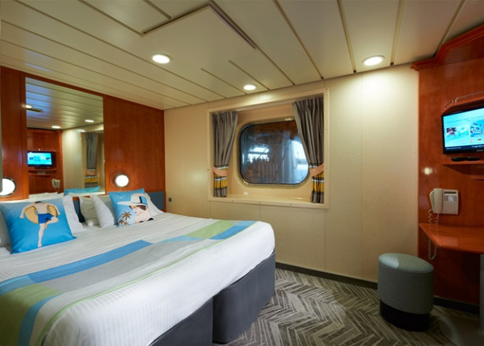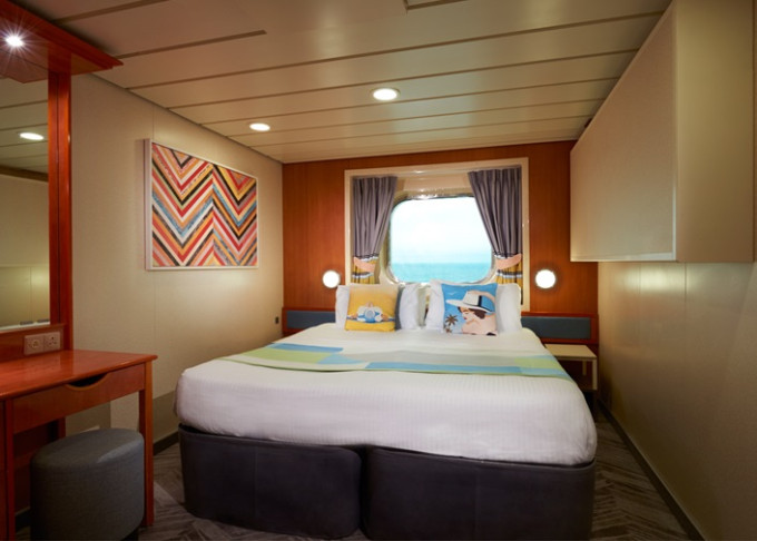 OA - Vonkajšia kajuta s veľkým oknom 14 m². Veľké neotvárateľné okno. 5,6. paluba - vpredu, stred. Max 4 osoby. 1 218 € 609 € za osobu