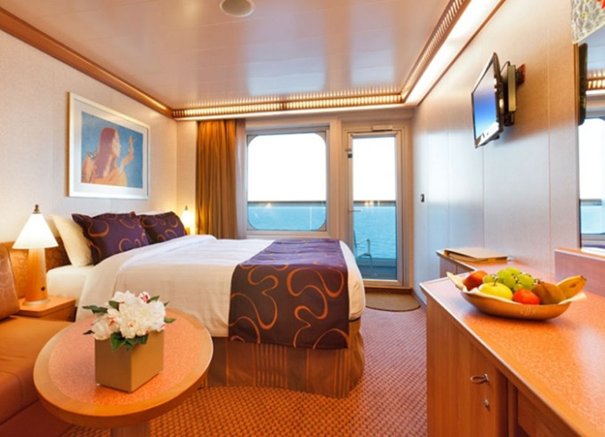 - Ubytovanie v kajute vybranej kategórie. Základné vybavenie: kúpeľňa s WC a sprchovacím kútom, 2 lôžka spojiteľné do manželskej postele, skrine, nočné stolíky, toaletný stolík a stolička, nastaviteľná klimatizácia, interaktívna satelitná TV s plochou obrazovkou, trezor, sušič na vlasy, uteráky a posteľné prádlo, Wi-Fi pripojenie (za poplatok), 24/7 kajutová služba (za poplatok).