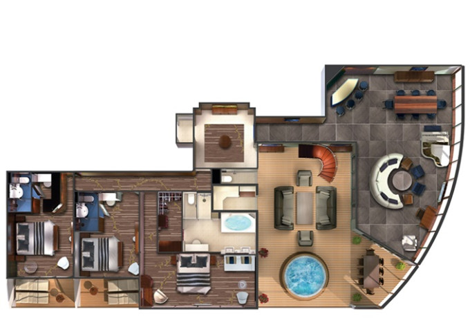 | H2 - The Haven Deluxe Owner's Suite 111 m² / balkón 53 m². 15. paluba vpredu. Max 4 osoby. Výhody The Haven. | 8 468 € 4 234 € za osobu | ||