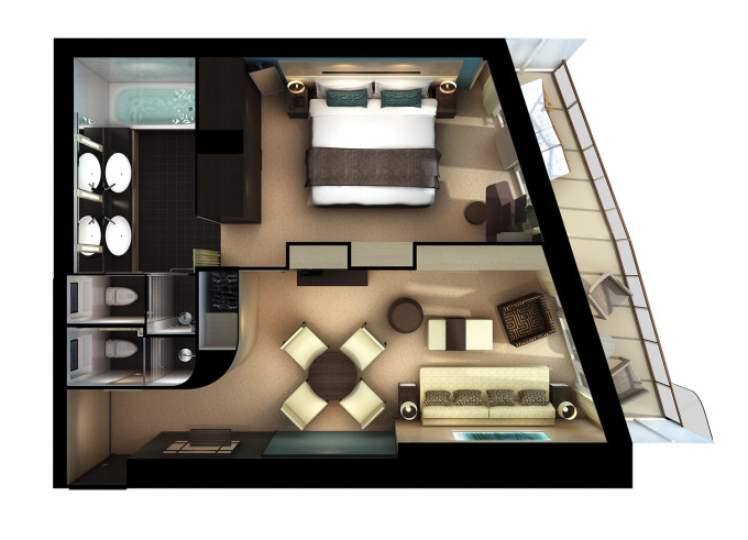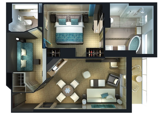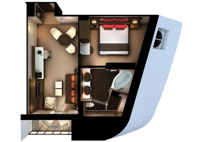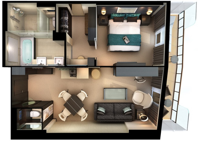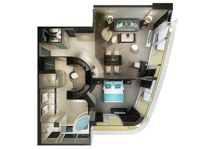 | H3 - The Haven Deluxe Owner's Suite 53 m² / balkón 9 m². 16. paluba - vpredu. Max 4 osoby. Výhody The Haven. | 15 968 € 7 984 € za osobu |