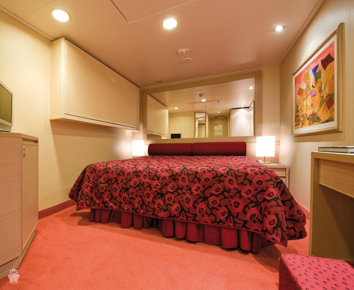- Ubytovanie v plne vybavenej kajute: vlastná kúpeľňa so sprchou a WC, interaktívna TV, telefón, safe, sušič na vlasy, regulovateľná klimatizácia, minibar (za poplatok). Pripojenie na internet cez Wi-fi (za poplatok)