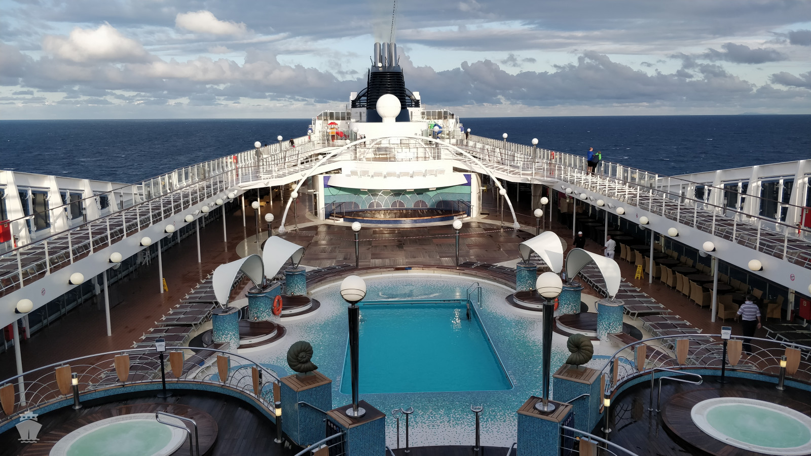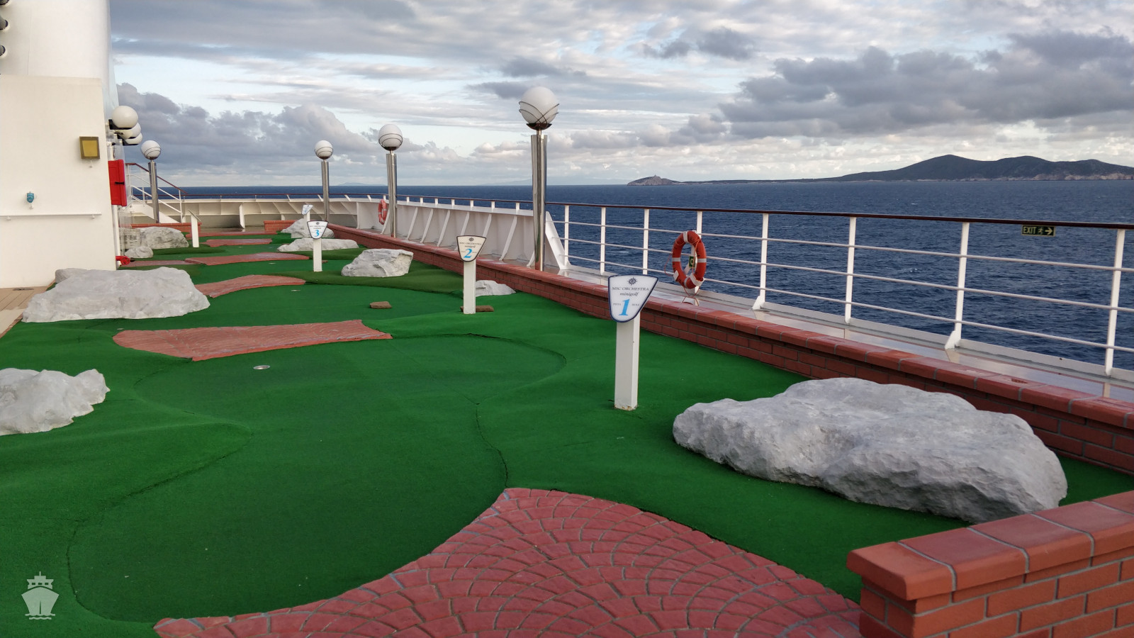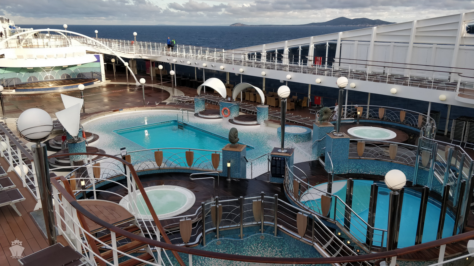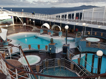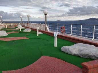 - Športové aktivity na otvorených palubách (jogging, basketbal, futbal, tenis), bazény a ležadlá