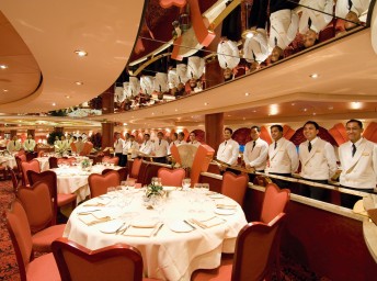Vila Borghese - (5. paluba) s kapacitou 720 hostí. Otvorená ako voľné sedenie na raňajky 7:30-9:30 a obed 12:00-14:00. Pri večeri je zasadací poriadok a turnusy o 18:15 a 20:30.