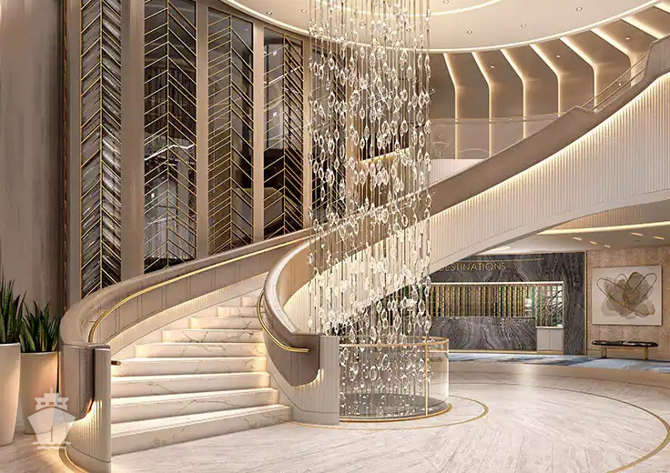 - Apartmán Palatial Owner’s Suite a horná časť lode Library sú exkluzívne navrhnuté firmou Ralph Lauren Home