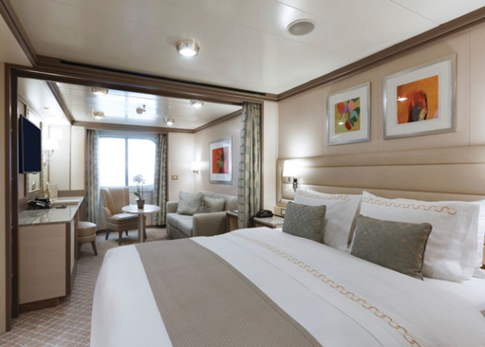 | CV - Classic Veranda Suite 29 m² + balkón 6m². Spálňa s oddeliteľnou obývacou časťou. 5,6. paluba. Max 3 osoby. | 11 400 € 5 700 € za osobu | ||