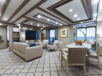 | S2 - Silver Suite 2 88 m² + balkón 12 m². Silver Suite spojená s Panorama Suite. 2 spálne, 8,10,11. paluba. Max 3 osoby. | 24 400 € 24 400 € za osobu |