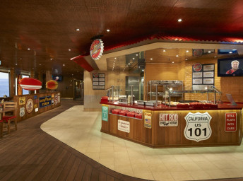- Čapovaná voda, limonáda, ľadový čaj, káva, čaj, kakao z automatov v hlavnej reštaurácii Main Dining Room a bufetovej 24/7 reštaurácii Lido