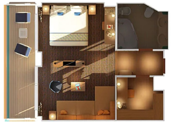 | HS - Suite Havana Cabana 24 m²+ vonkajšie patio 9 m². 5. paluba. Výhody Suite. Tropický štýl, vstup do exkluzívnej zóny Havana. | 5 736 € 2 868 € za osobu | ||