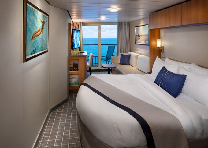 - Kajuty sú umiestnené v blízkosti lodného Spa. K ich vybaveniu patrí posilnený systém vzdušnej filtrácie, posteľ Queen-Size (v kategóriách Edge King-Size), veľké zasúvacie sklenené dvere, exkluzívne posteľné prádlo eXhale®, veľkorysé skladovacie priestory.