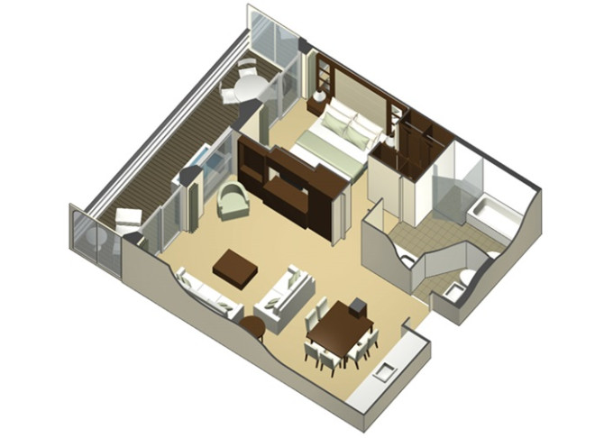 | CS - Celebrity Suite 32 m² + balkón 10 m². 10,11. paluba. Max 4 osoby.Výhody Suite The Retreat. | 16 215 € 5 405 € za osobu | ||