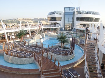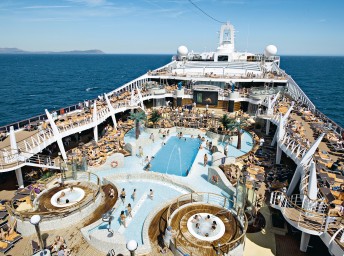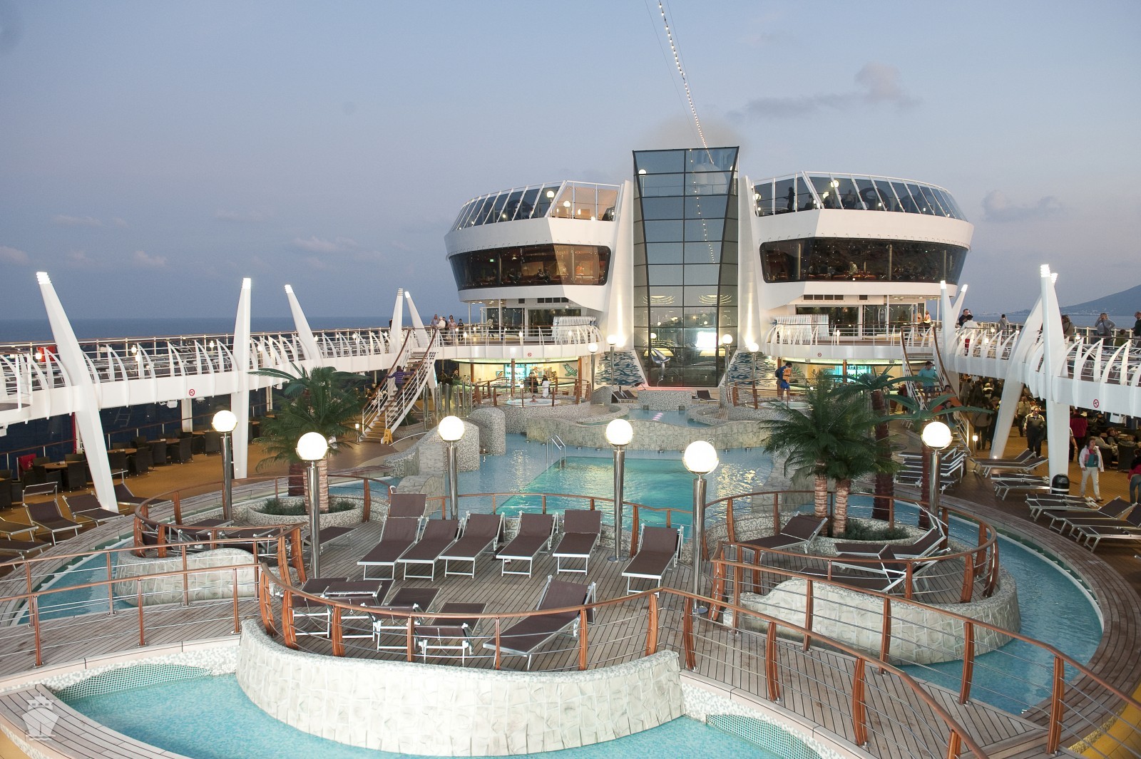 - Športové aktivity na otvorených palubách (jogging, basketbal, futbal, tenis), bazény a ležadlá