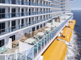 Z toho až 64% kajút je s balkónom, z ktorých 106 má okrem tradičného balkóna s kreslami a stolíkom navyše aj väčšiu loggiu s dvomi pohodlnými chaise-long pohovkami.