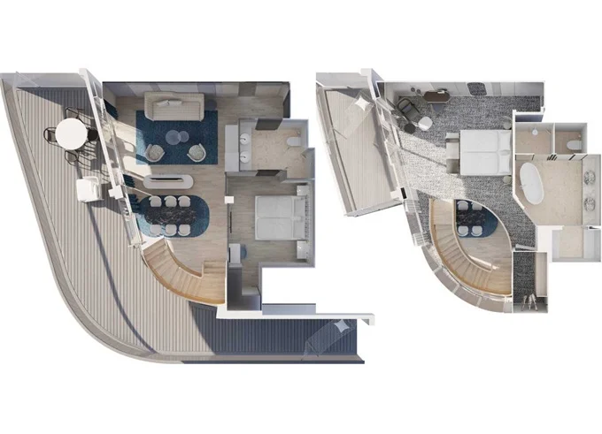 | SKGO - Große Freiheit Suite 88 m² + balkón 43 m² so stolom, ležadlami + balkón s hojdacou sieťou. 2 spálne, 2 kúpeľne, šatník, infračervená sauna. 9. paluba. Max 6 osoby. Výhody Suite. | 12 598 € 6 299 € za osobu | ||