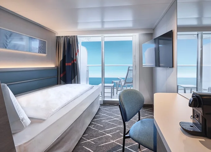 | SKAO - Schöne Aussicht Suite 39 m² + balkón 10-12 m² s ležadlami a hojdacou sieťou. 7-14. paluba. Max 4 osoby. Výhody Suite. | 5 096 € 1 274 € za osobu |