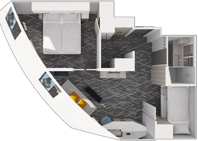 | JKAO - Junior Suite s balkónom 26 m² + balkón 7 m² so stoličkami a podnožkami. 9-14. paluba. Max 4 osoby. Výhody Junior Suite. | 5 556 € 1 389 € za osobu |