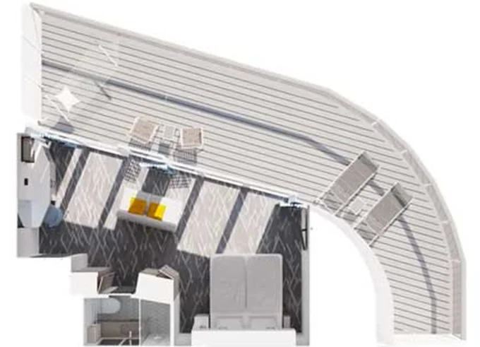 SUFO - Fernweh Suite kat. A 28-38 m² + balkón 34 m² so stolom, ležadlami a hojdacou sieťou. 14. paluba. Max 4 osoby. Výhody Suite. 14 228 € 7 114 € za osobu