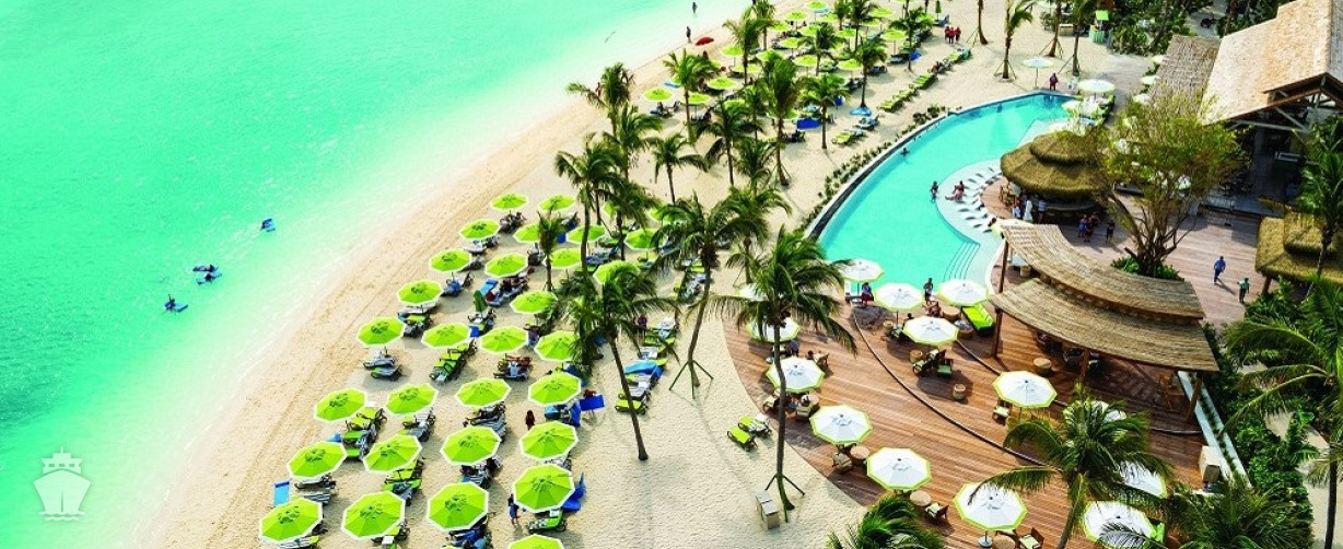 Pešie vzdialenosti nie sú náročné: z Arrival Plaza do Thrill Waterpark 3 min, na Harbor Beach 5 min, k Oasis Lagoon 8 min, na Chill Island 5 min, k Breezy Bay na Chill Island 10 min, na pláž South Beach 10 min, ku klubu Coco Beach Club 10 min.